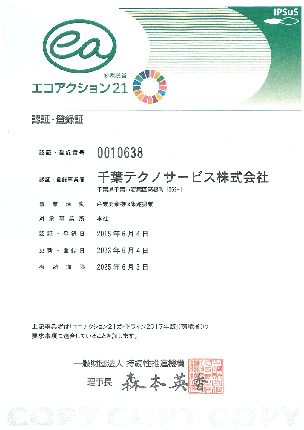 エコアクション21認証・登録証